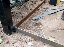 Затем в некотором отдалении от труб укрепили металлические памятники в форме крестов, одновременно собрав из полосы нижний периметр участка. Он необходим как для выравнивания ограды, так и для последующей укладки плиткой.